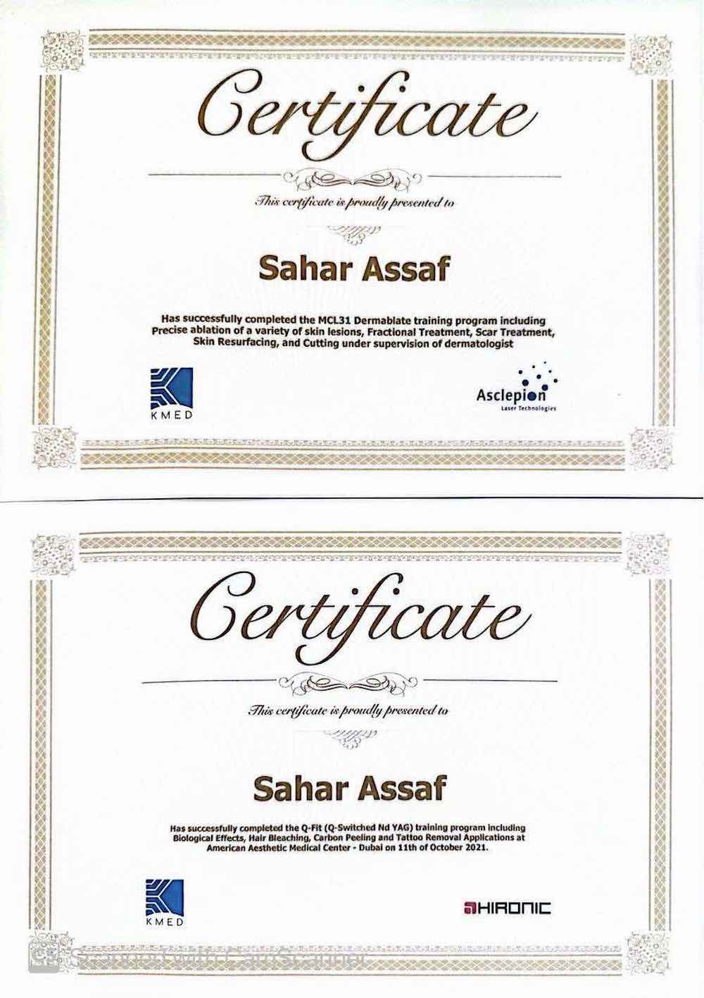 شهادات في الليزر الكربوني وإزالة التاتو – دبي (2020).